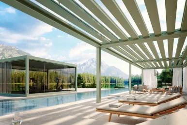 Wind and rain sensors operate quietly in the background, while remote control enables precise adjustment of the louver roof, side screens, and lighting—so comfort is always within reach, without constant attention.